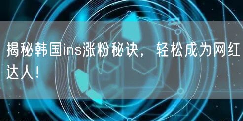 在这个数字化时代,社交媒体的影响力已经渗透到每一个角落。特别是像韩国ins这样的社交平台,已经成为众多网红达人的聚集地。那么,究竟有什么秘诀可以让我们轻松成为网红达人呢?今天,就让我们一起揭秘韩国ins涨粉秘诀!