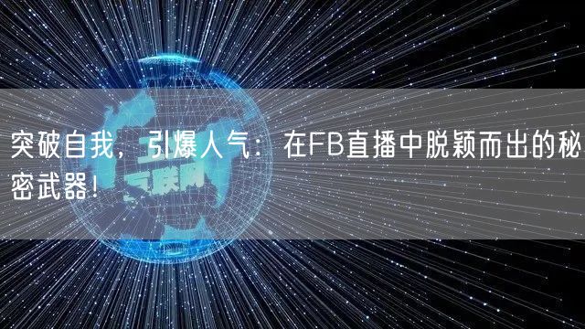 总之,想要在FB直播中脱颖而出,需要掌握一些秘密武器。突破自我,提升人气,打造个性化的直播内容,善于利用直播工具,保持积极的心态和坚持不懈的努力,这些都是非常重要的。希望这篇文章能够对你有所帮助,让你在FB直播中成为一颗耀眼的明星。