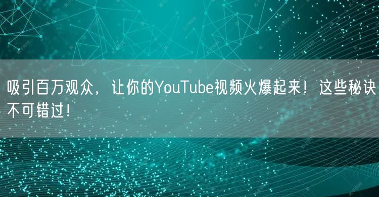 吸引百万观众,让你的YouTube视频火爆起来!这些秘诀不可错过!