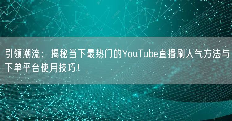 引领潮流:揭秘当下最热门的YouTube直播刷人气方法与下单平台使用技巧!