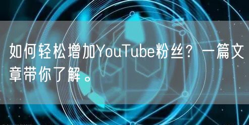 如何轻松增加YouTube粉丝?一篇文章带你了解。