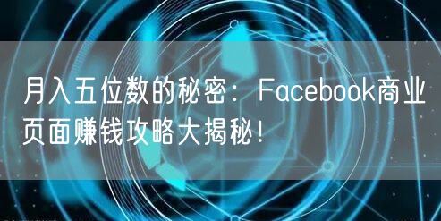 月入五位数的秘密:Facebook商业页面赚钱攻略大揭秘!