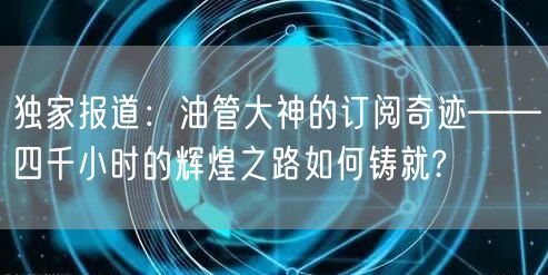 关键词:油管大神、订阅奇迹、四千小时历程、成功之路、创作激情。